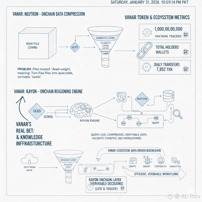 Vanar What matters here is the problem they’re choosing to fight. A lot of blockchains can confirm transactions quickly, but most of them still treat files like dead weight: you store a pointer, you store a hash, and the meaning lives somewhere else. Vanar’s Neutron pitch is basically: stop doing that — turn the file itself into something compact, provable, and queryable, stored directly onchain as a “Seed.” They even attach a concrete claim to it, describing an engine that can compress something like 25MB down to 50KB using semantic + heuristic + algorithmic layers, so the output isn’t just smaller, it’s structured in a way that can be retrieved and reasoned over.