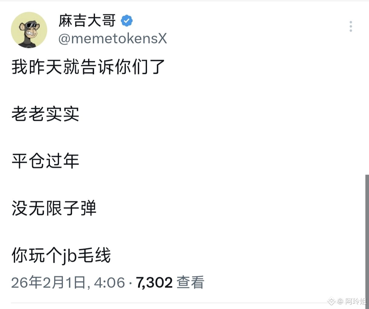 網友戲稱「麻吉模式」成幣圈爆倉經典,佩服其無限子彈與心態,但高槓桿如雙刃劍,風險管理仍是生存關鍵。幣圈教訓:梭哈前,請三思。#美国政府停摆 #