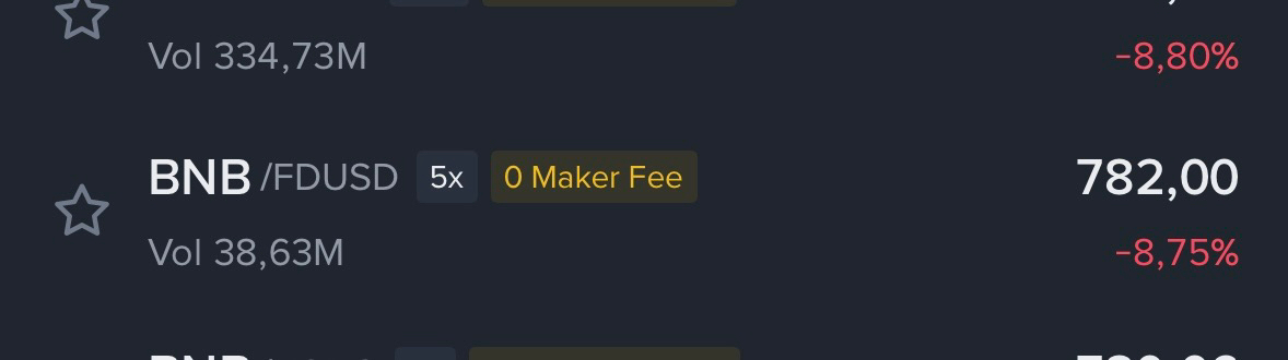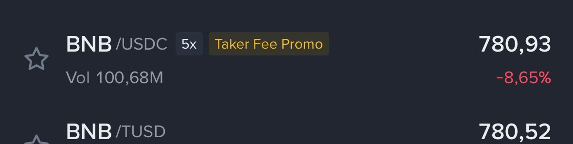 • Significado: Quando você vê este rótulo, você não paga taxas de transação se seu pedido for executado como uma ordem de Criador. A Binance frequentemente usa isso para promover o uso de certas stablecoins como FDUSD.