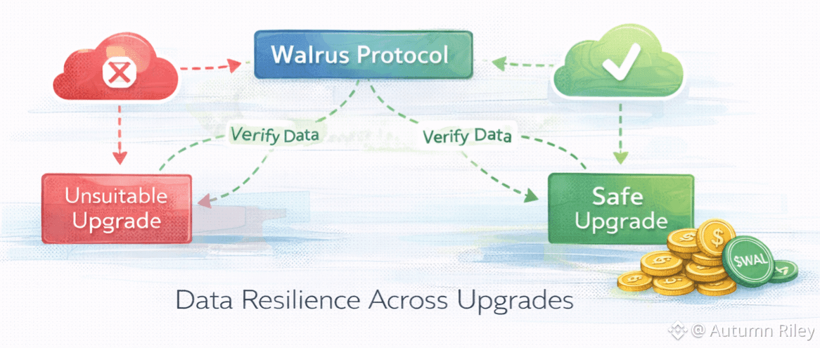 Upgrades and rollbacks are common sources of risk. When data is tightly coupled to execution, reverting changes becomes complex and error-prone. Walrus Protocol enables safer upgrade paths by keeping data accessible across versions, allowing developers and communities to reason clearly about what changed and why.