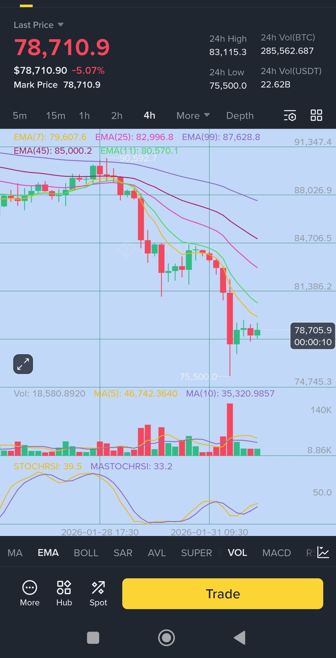 O Bitcoin está sendo negociado entre 78000 e 79000 neste momento (queda de cerca de 5 a 7% nas últimas 24 horas em 1 de fevereiro de 2026). Ele está corrigindo fortemente a partir das recentes máximas perto de 90k mais (a máxima histórica foi em torno de 126k no final de 2025). Principais razões: grandes saídas de ETF (bilhões retirados recentemente), alavancagem sendo liquidada, preocupações macroeconômicas (coisas do Fed, USD mais forte) e pessoas realizando lucros após a enorme corrida de 2025.