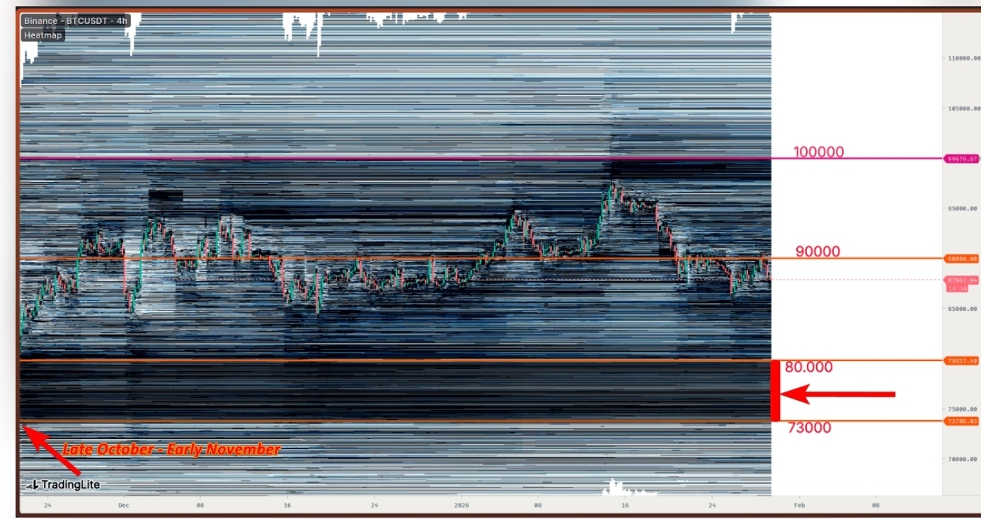 Os sentimentos baixistas em relação ao Bitcoin continuam a dominar o mercado, após os preços caírem abaixo da chave de $80.000 em 31 de janeiro, resultando em uma nova onda de liquidações de mercado. Curiosamente, um analista pseudônimo com o nome de usuário CryptoMe identificou um “pocket de ar” na estrutura de preços atual, que potencialmente aponta para o alvo de baixa desta recente queda de preço.