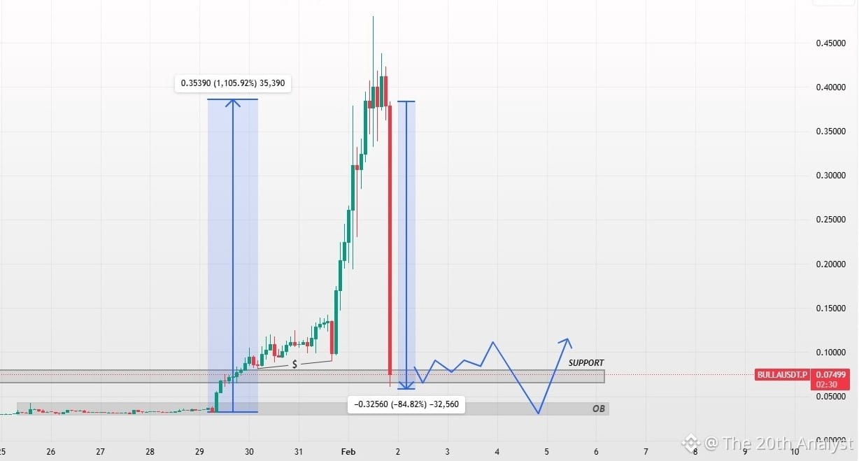 $BULLA BULLAâs recent price action reflects a textbook distribution-to-displacement cycle.