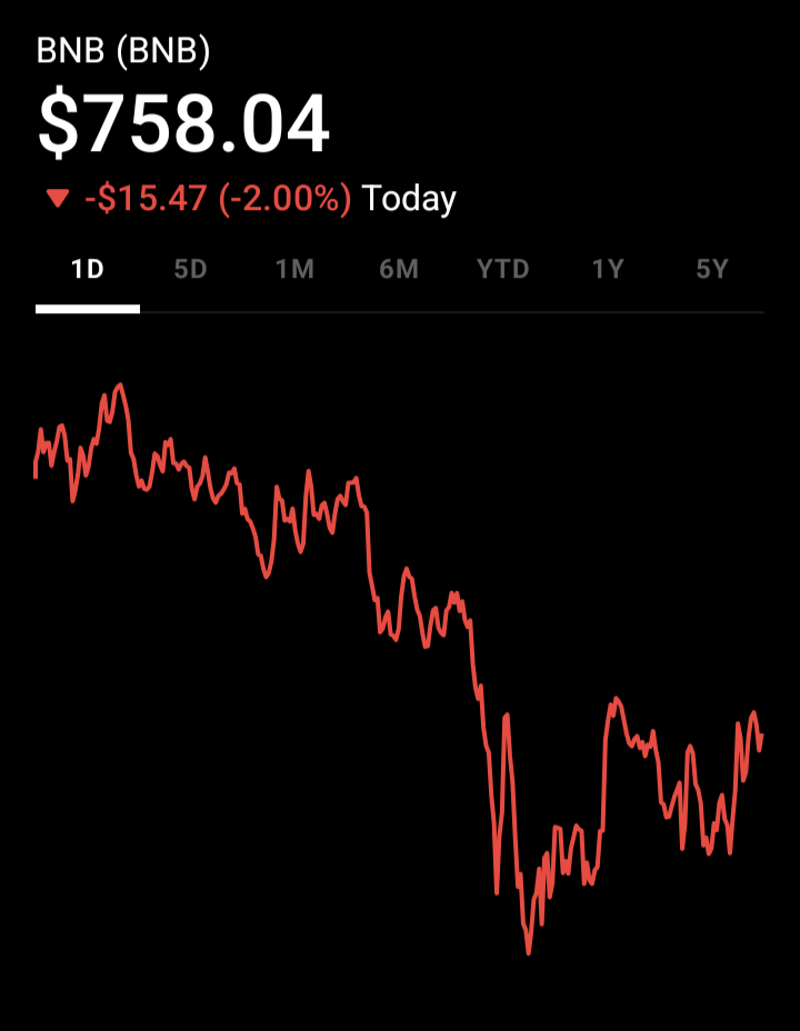 • $BNB : Em torno de ~$758 e moderadamente em baixa; o preço do BNB tende a refletir o sentimento mais amplo do mercado — potencial lateral com leve baixa se a volatilidade persistir.