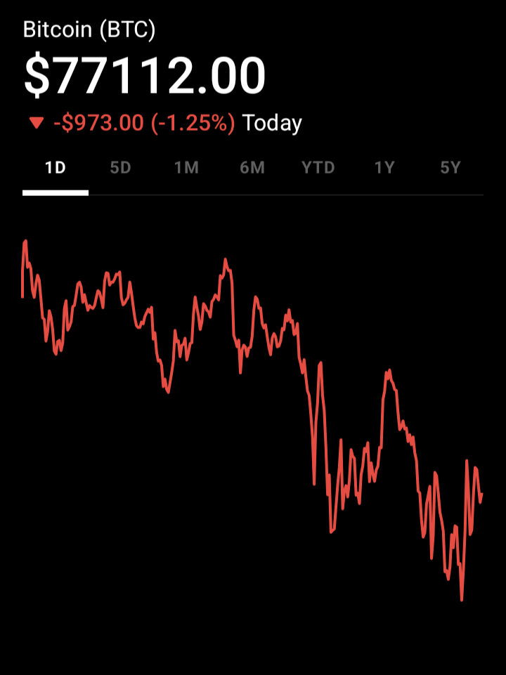 • $BTC : Preço em torno de ~$77k com leve fraqueza de curto prazo; o mercado mais amplo continua volátil após recentes recuos — a ação de curto prazo pode permanecer irregular.