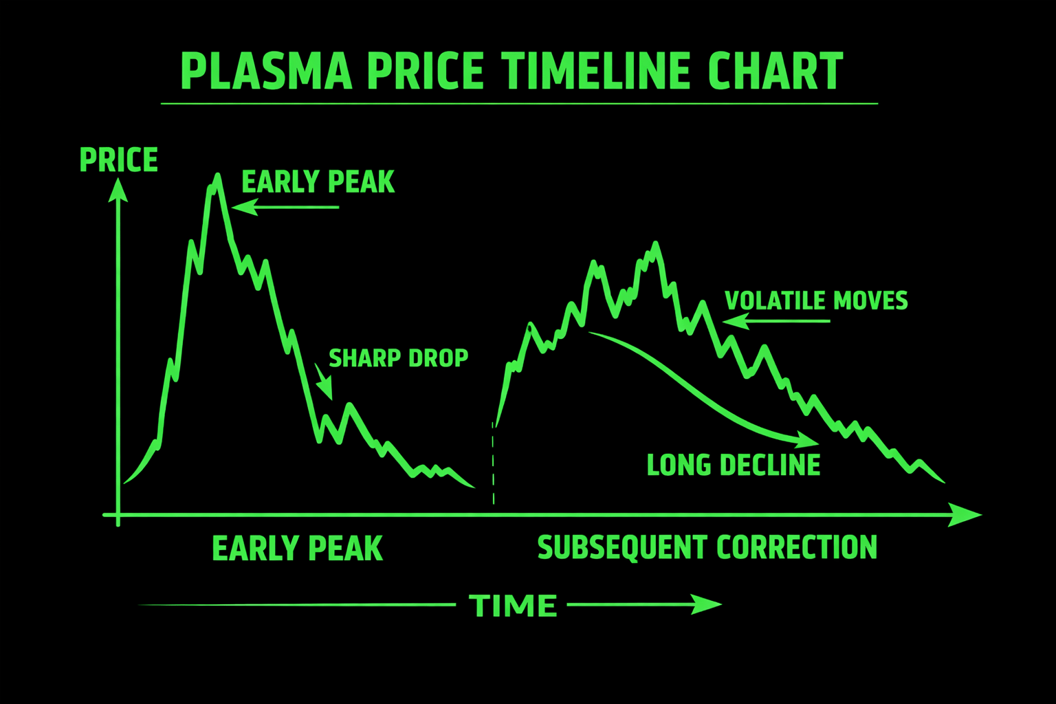 Após a primeira grande alta, o XPL começa a sentir uma forte pressão de venda. Até o final de 2025, o preço cai mais de 80% do topo, mostrando que o entusiasmo do mercado esfriou bastante e a atividade em cadeia não correspondeu às grandes esperanças iniciais.