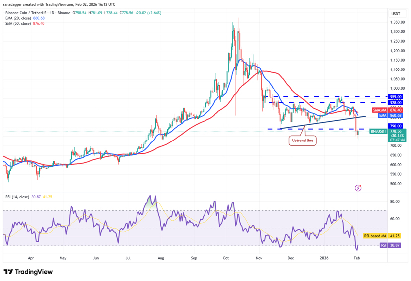 O BNB está atualmente negociando em torno de $773, enquanto meu custo médio é de $881. Tecnicamente, a estrutura enfraqueceu significativamente. A linha de tendência de alta quebrou. O antigo suporte em $790 se virou em resistência. Os suportes mais próximos agora estão em torno de $730, com uma zona mais profunda perto de $700.