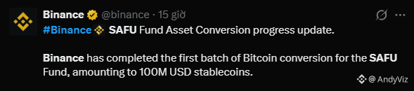 Binance just confirmed the first $100 million (approx. 1,315 BTC) deployment to convert their SAFU insurance fund from stablecoins to Bitcoin. Historically, this fund was held in USDC and USDT for liquidity. By moving 100% of the fund (roughly $1B total) into BTC, Binance is making a massive statement: Bitcoin is now liquid and safe enough to outclass digital fiat.