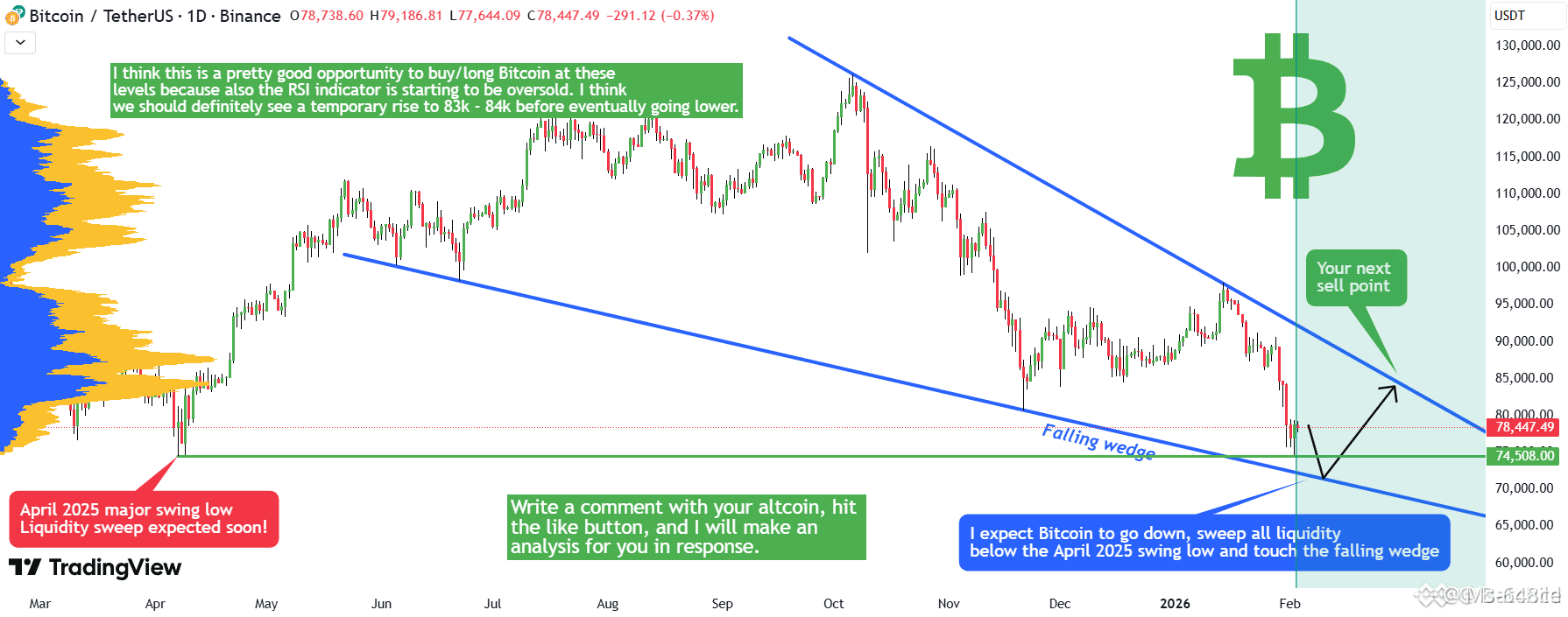 At the time of writing, Bitcoin ($BTC ) is trading around $78,000. Based on current market structure and liquidity dynamics, I expect a short-term move lower toward the $71k–$72k zone 📉 before any meaningful continuation higher.