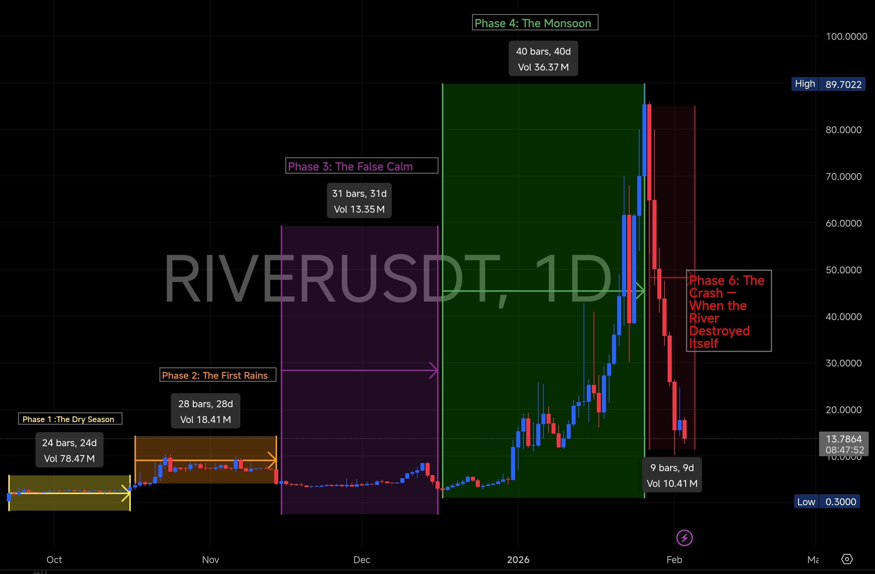 E entre todos os gráficos, $RIVER se comporta mais próximo de um verdadeiro rio — não apenas em nome, mas em ciclos, violência, calma, transbordamento e destruição.