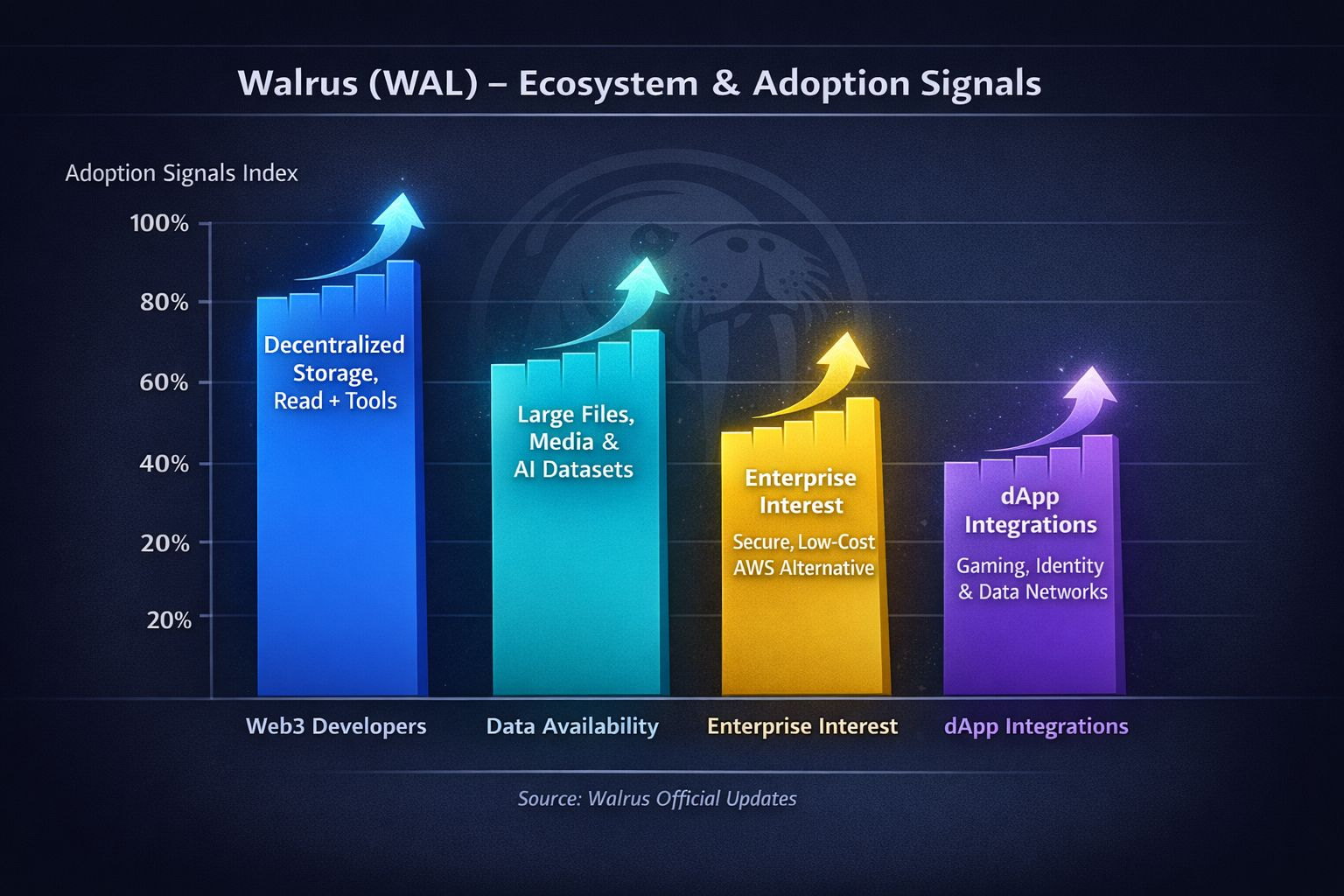 Além dos movimentos de preço, a Walrus está se posicionando de forma constante como uma camada de dados para aplicações Web3, especialmente onde grandes arquivos, mídias e conjuntos de dados de IA precisam de armazenamento descentralizado com alta disponibilidade.