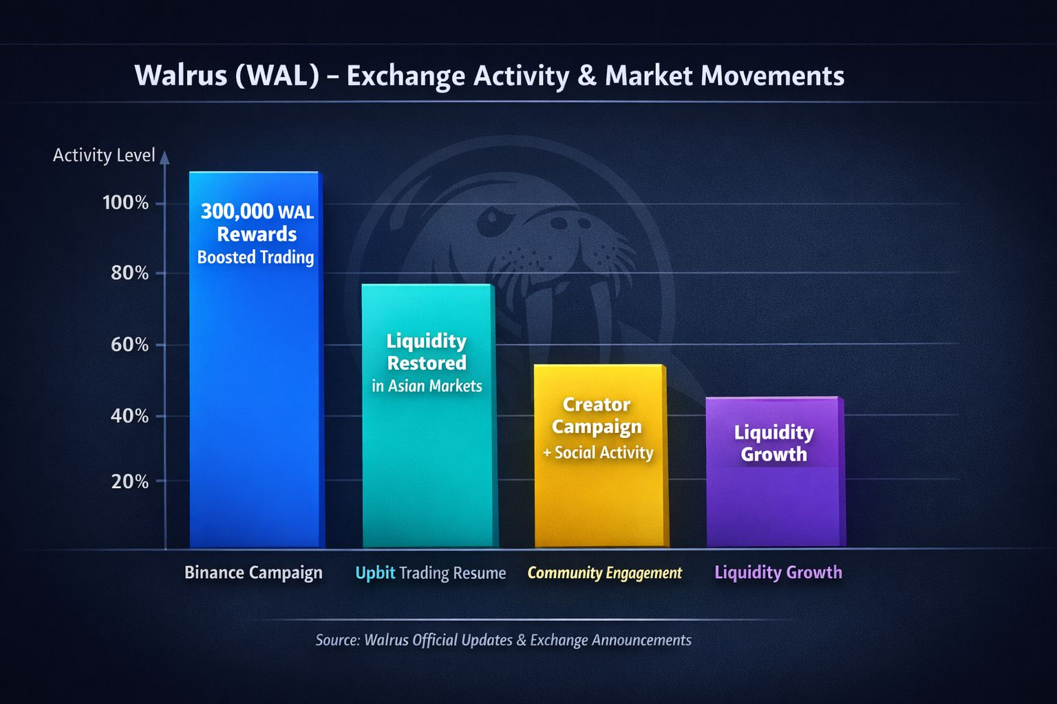 Walrus está progredindo das fases iniciais de lançamento para a adoção prática e escalonamento do ecossistema. Embora as condições do mercado mais amplo continuem mistas, campanhas recentes de intercâmbio e integrações de infraestrutura indicam um papel aprofundado para o WAL dentro do crescente mundo de armazenamento descentralizado e DeFi na Sui.