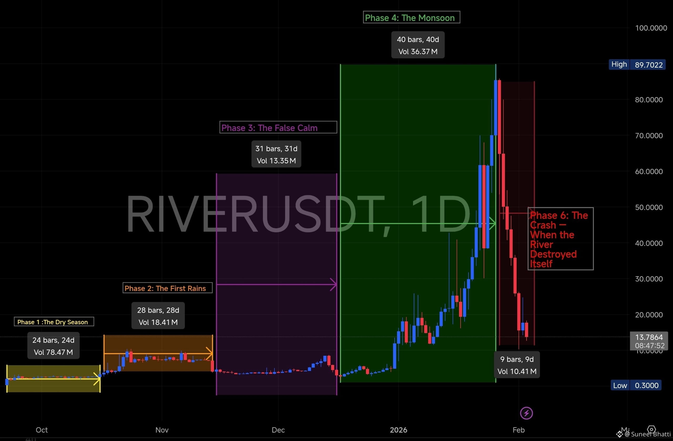 And among all charts, $River behaves closest to a real river — not just in name, but in cycles, violence, calm, overflow, and destruction.