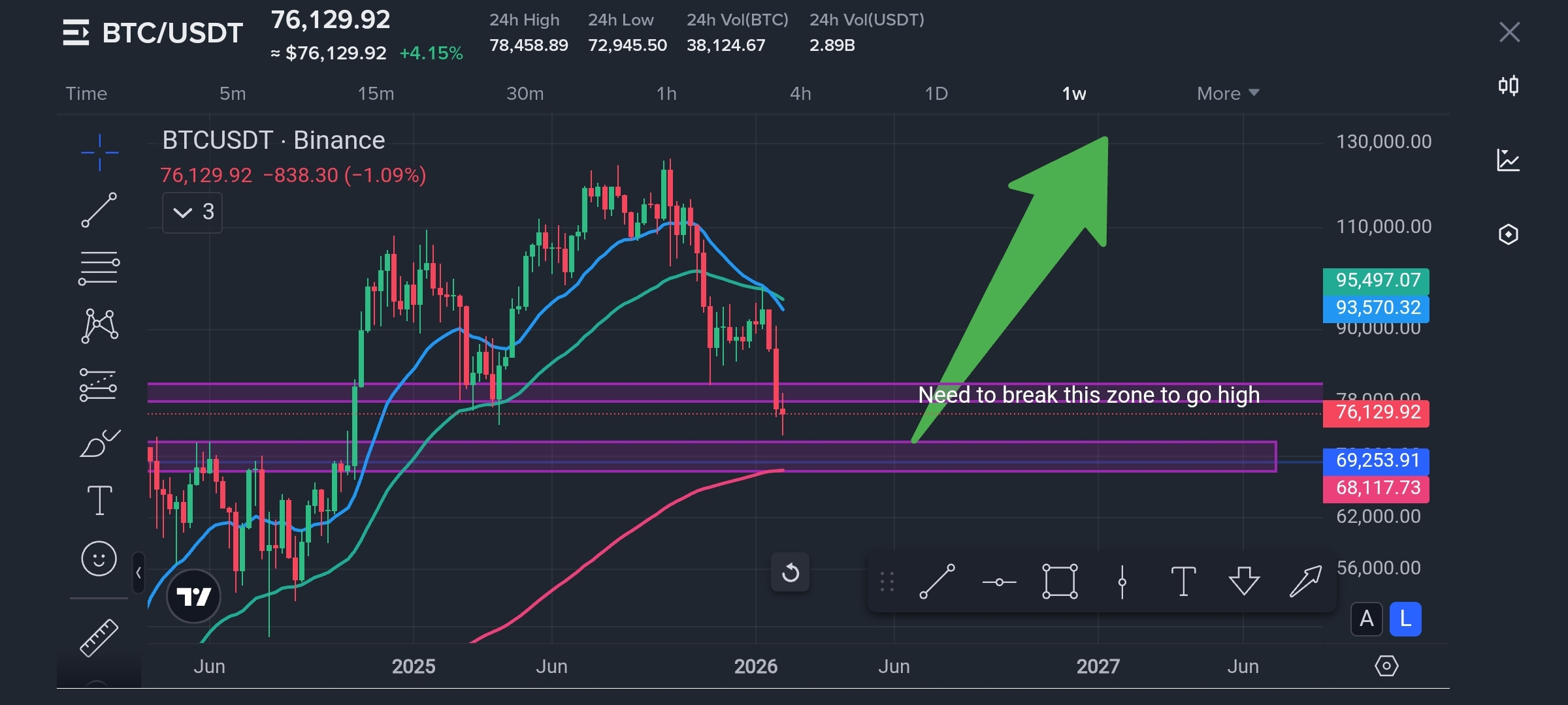 O BTC perdeu a área de $78K, então se não voltar logo, o próximo suporte está em torno de $72K e depois $68K