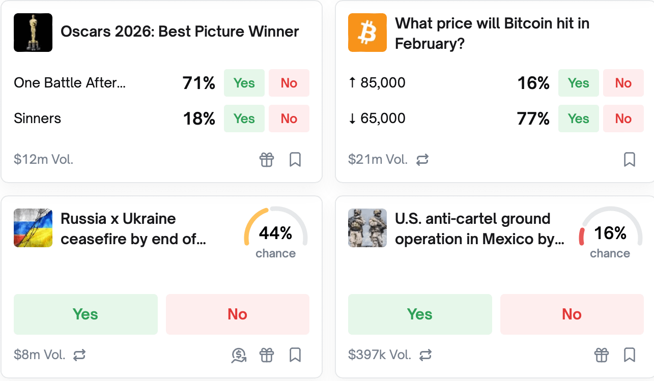 A corretora de varejo Robinhood e a plataforma de apostas esportivas DraftKings também lançaram mercados de previsão em 2025, congestionando ainda mais uma categoria que ganhou impulso significativo durante a eleição presidencial dos EUA em 2024.