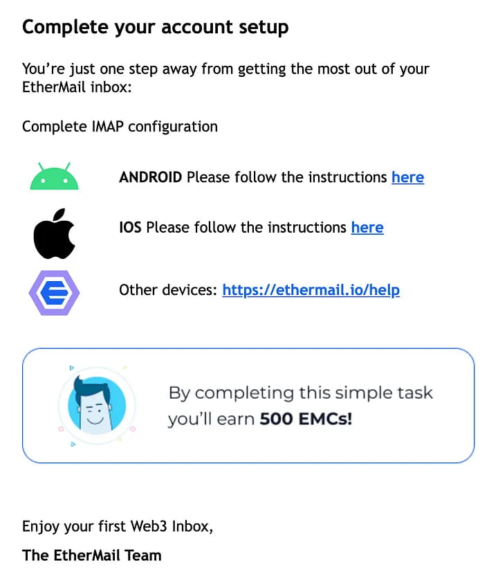 Você receberá 250 EMCs por indicar um amigo e 500 EMCs ao concluir a configuração IMAP (você receberá um e-mail sobre isso em sua caixa de entrada).