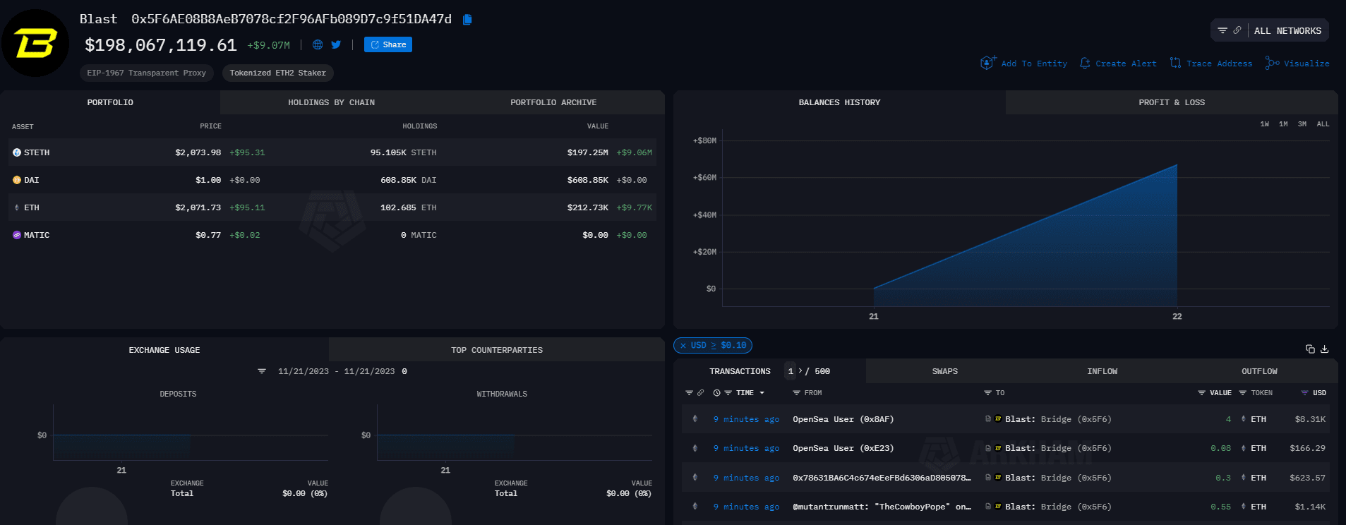 Aproximadamente 30 horas após o lançamento, o Total Value Locked (TVL) da Blast atingiu impressionantes US$ 198.067.119,00. O TVL representa a quantidade total de ativos bloqueados na plataforma, indicando interesse e participação substanciais. Você pode verificar essas informações usando o seguinte link: