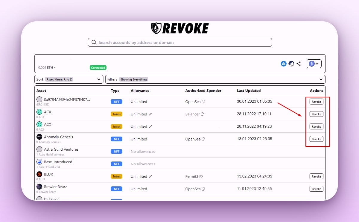 RevokeCash – a plataforma permite cancelar aprovações de quaisquer tokens e NFTs. Após interagir com contratos duvidosos, você deve cancelar as aprovações imediatamente.