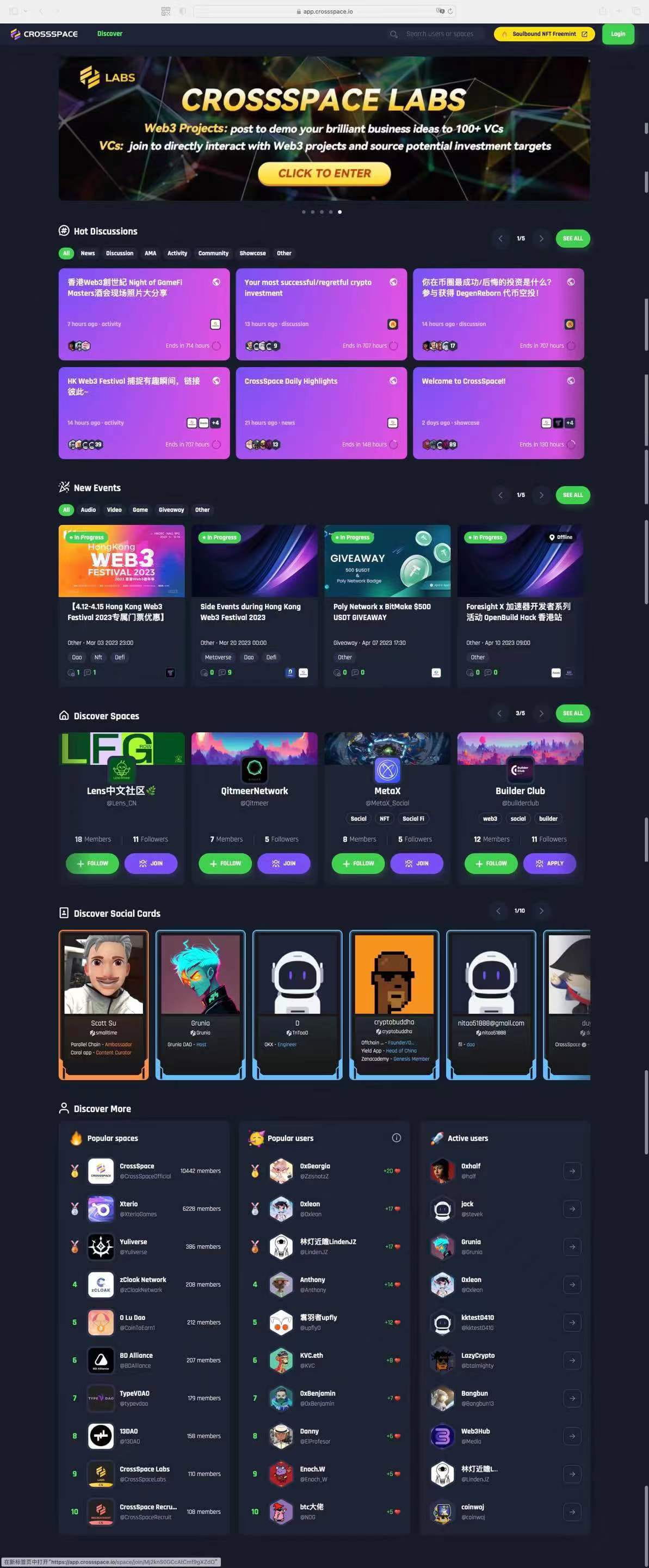 O CrossSpace resolve de forma inovadora os problemas operacionais que os gerentes da comunidade Web3 precisam para alternar entre diferentes plataformas e ferramentas, permitindo que a comunidade se concentre na operação de uma plataforma e maximize o orçamento e o efeito do crescimento, enquanto os usuários individuais que participam do Web3 podem participar de atividades em diferentes comunidades no CrossSpace e, ao mesmo tempo, gerenciar sua identidade, contribuições, tarefas, atividades e ativos pessoais acumulados em diferentes comunidades de maneira "única".