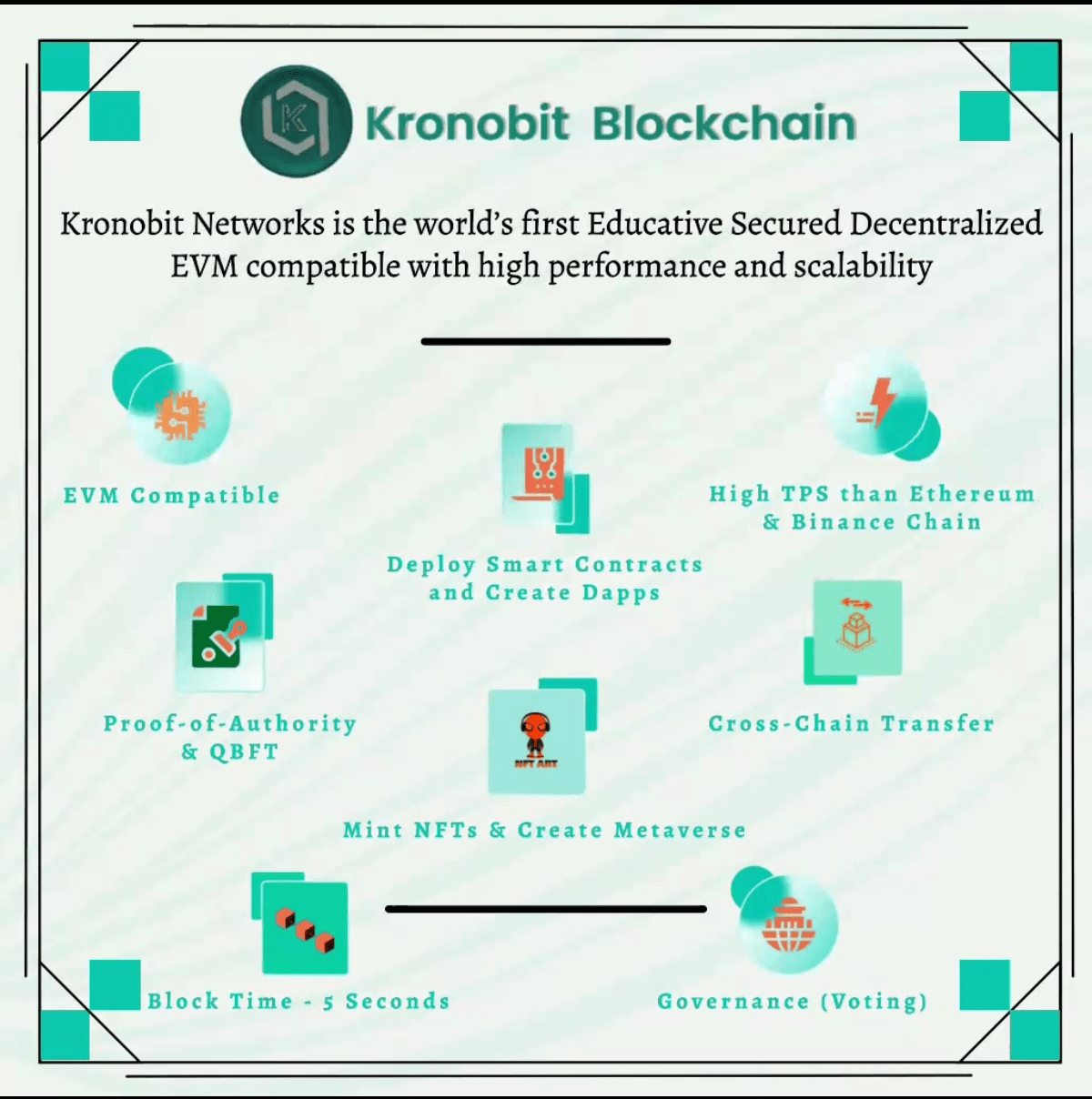 Kronobit Networks é o primeiro EVM educacional seguro e descentralizado do mundo, compatível com alto desempenho e escalabilidade.