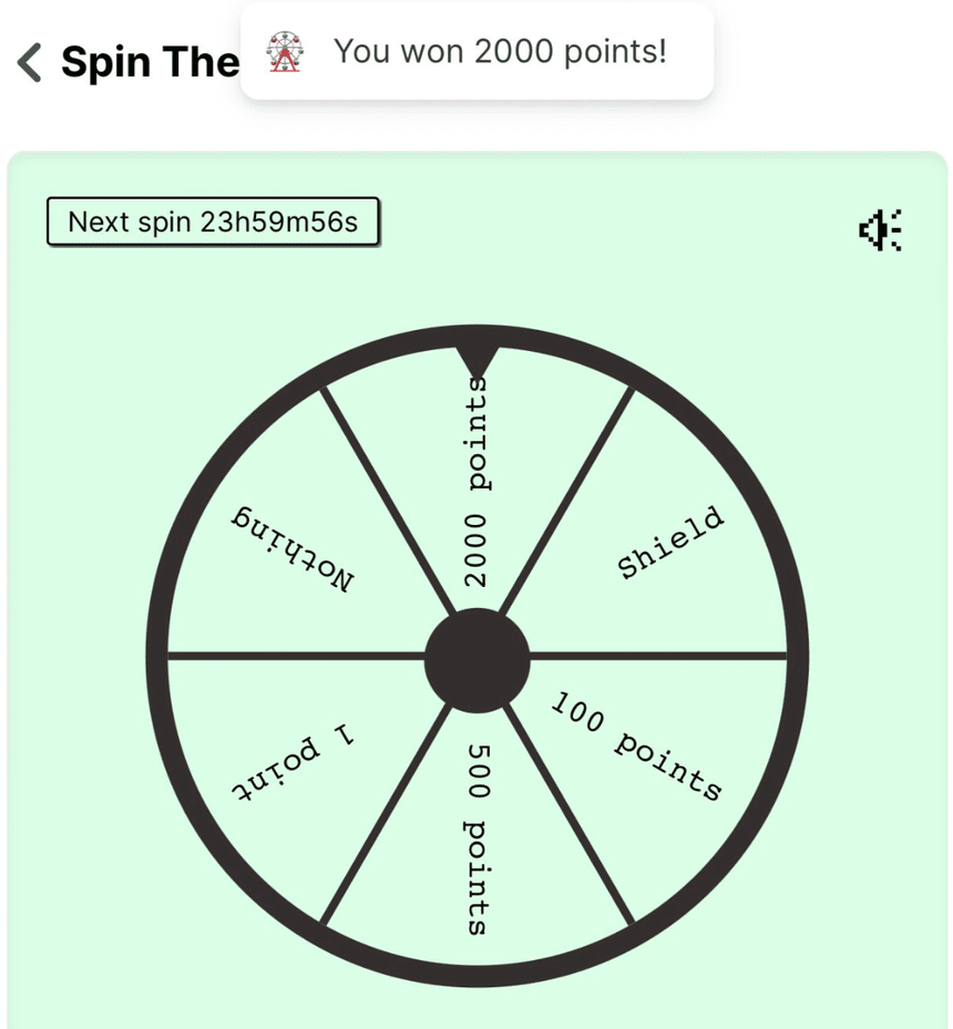 Fornecer aos usuários expectativas de lucro futuro de baixo custo, incentivando a difusão social positiva: Cada animal de estimação tem a oportunidade diária de girar uma roleta, oferecendo recompensas que variam de 1 a 2.000 pontos, incluindo a possibilidade de recompensas especiais como escudos ou nada. O giro gratuito da roleta oferece aos usuários uma expectativa de recompensas futuras de baixo custo, capitalizando o apelo psicológico de experiências semelhantes às de loteria, motivando o envolvimento contínuo dos jogadores e aumentando a interação do usuário com o jogo. Além disso, o giro grátis da roleta incentiva a difusão social positiva. Quando os usuários ganham recompensas substanciais, eles tendem a compartilhar seu sucesso nas redes sociais, trazendo novo tráfego adicional para a Fren Pet.