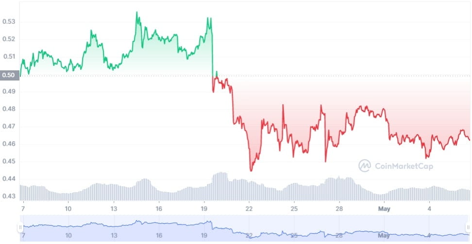 Após um março notável, o XRP nativo da Ripple não conseguiu realmente impressionar desde então. Desde 18 de abril, o XRP não conseguiu ultrapassar a marca de preço de US$ 0,50. No entanto, o suporte de US$ 0,45 é mantido.