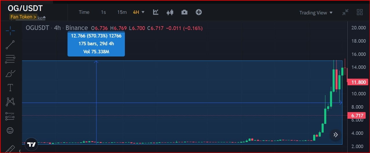 No dia 11 de MARÇO de 2023, o par OG/USDT CRYPTOCURRENCY saltou 570%, sendo negociado de $2,237 para $15,002 em 29 dias e 4 horas. E a maioria dos membros da nossa Comunidade de Crypto Trading transformou $500 em mais de $3.000 em 29 dias.