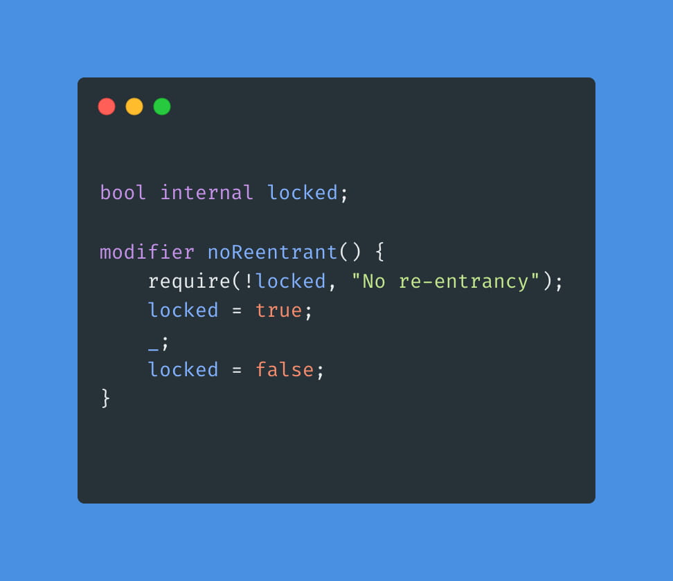Spoiler: Se você já ouviu falar sobre o modificador nonReentrant(), continue lendo porque você está prestes a descobrir algumas linhas abaixo do modificador globalNonReentrant() e do padrão verifica-efeitos-interações.