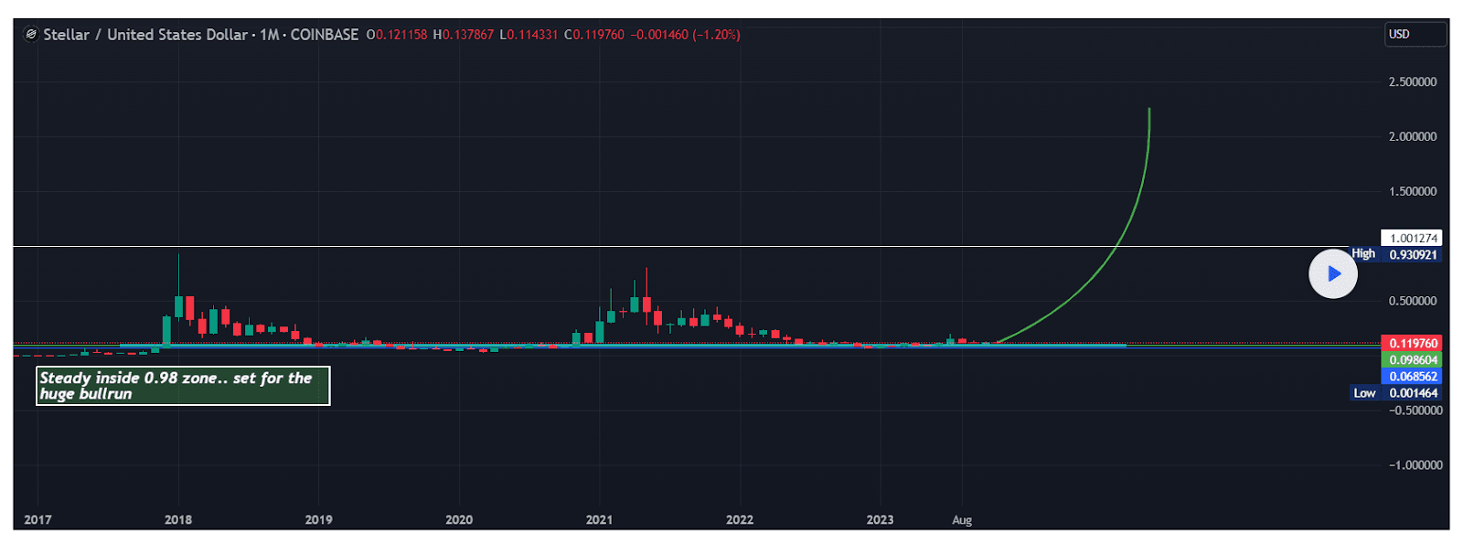 “XLM está estável dentro da zona de US$ 0,98 e aguardando um grande aumento; parecia estar pronto para uma corrida de touros e o primeiro a atingir US$ 1”, de acordo com o pseudônimo especialista em criptografia Richburst9.