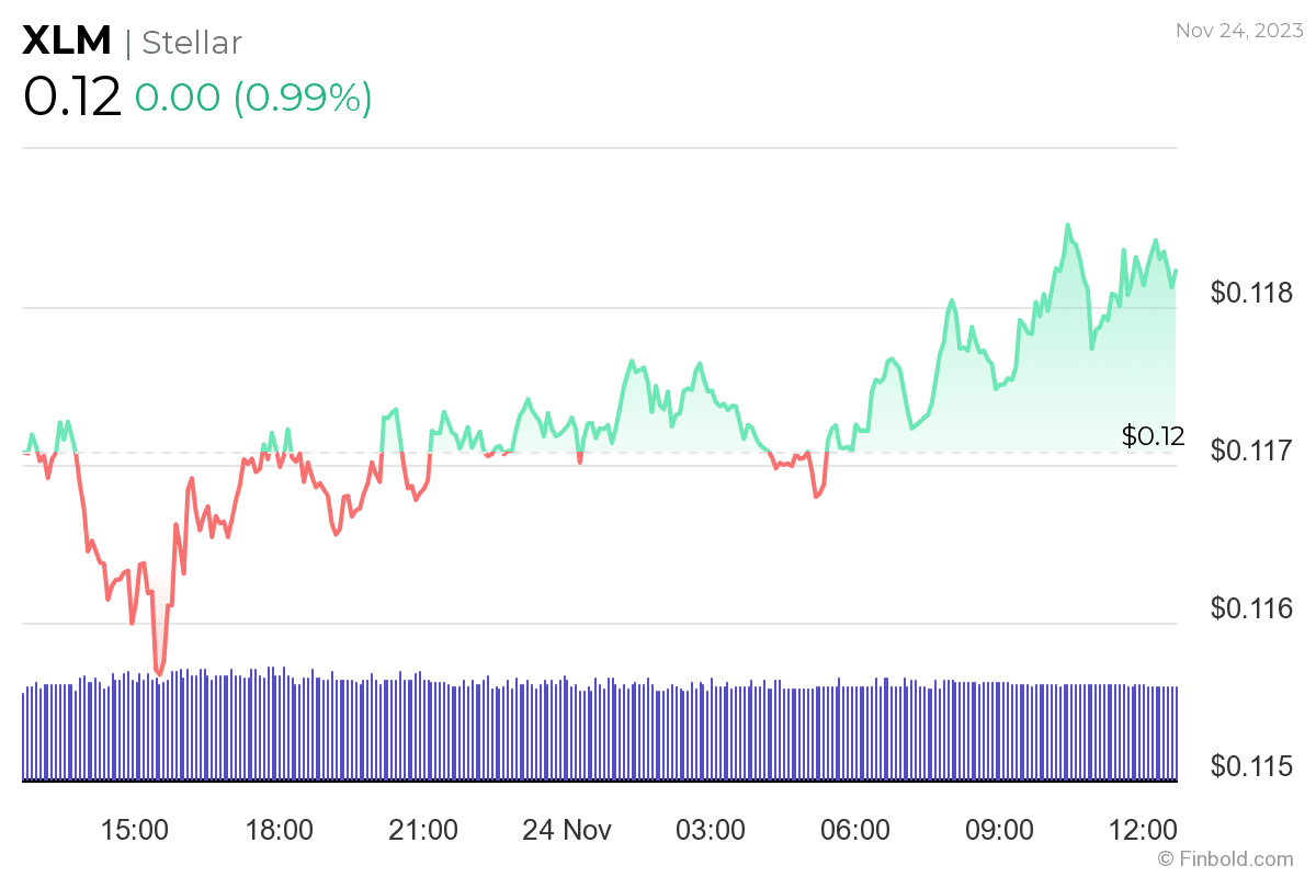 Stellar (XLM), uma rede descentralizada peer-to-peer (P2P), esteve recentemente em uma linha de tendência de alta. O XLM está atualmente avaliado em US$ 0,12, mostrando um ligeiro aumento de 0,3% em 24 horas.
