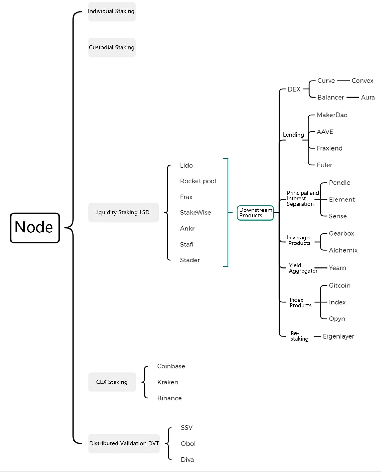 A linha LSD pode ser expandida para soluções de piquetagem Ethereum e seus derivados, que incluem quatro tipos de soluções de piquetagem Ethereum competindo por participação de mercado, tecnologia DTV garantindo segurança enquanto amplia a descentralização e produtos de aumento de rendimento de segunda camada e protocolos de alavancagem e produtos de índice nascidos em torno o certificado de aposta LSD.