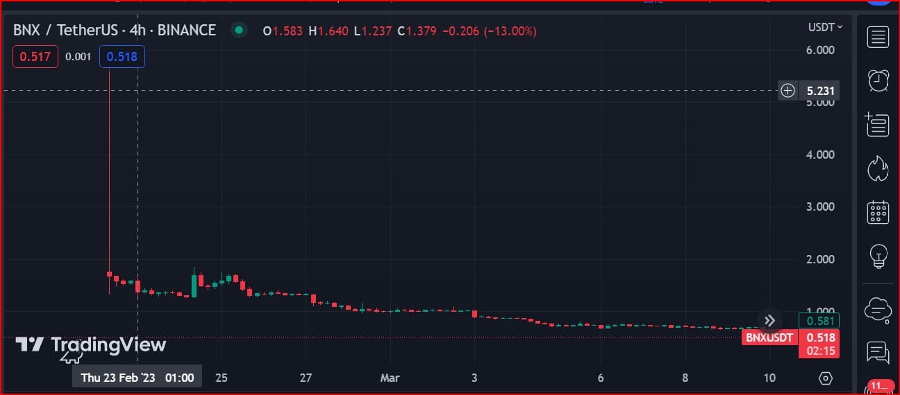 Por exemplo; um dos preços da CRIPTOMOEDA caiu de $18 para $0,02 em questão de 2 meses. Exatamente como o BNX/USDT caiu de $80 para $0,452 em poucos dias.