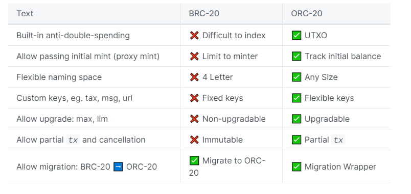 As melhorias do ORC-20 em comparação com o BRC-20 são as seguintes: