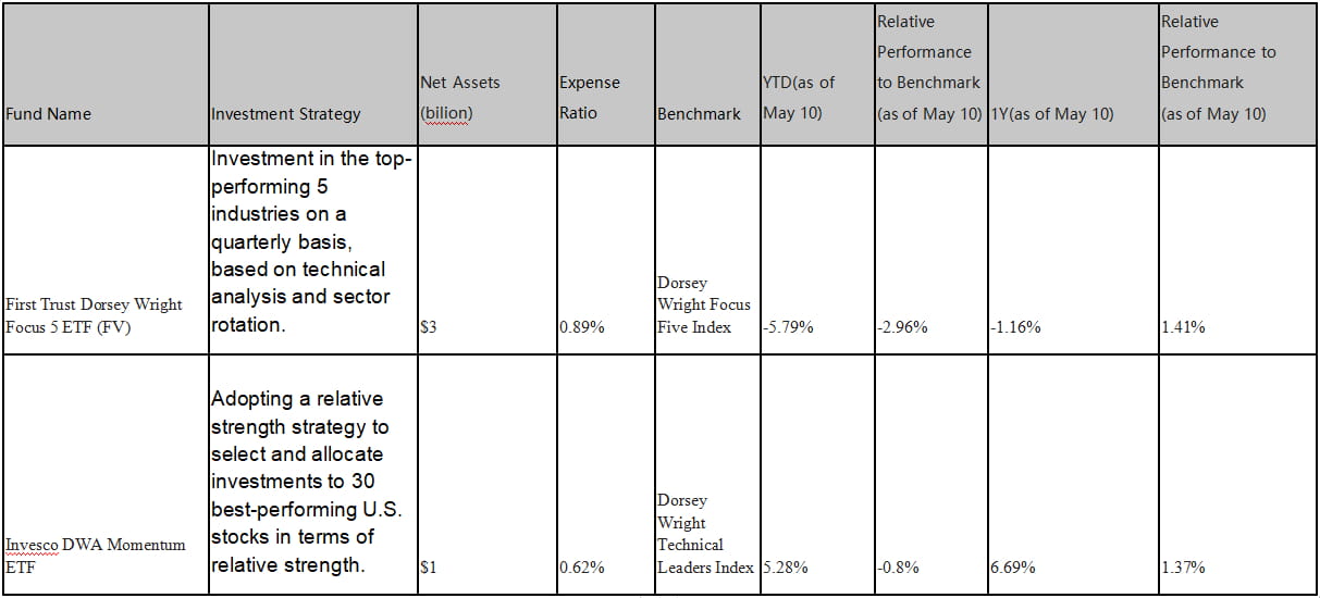 Usando o PDP (Invesco DWA Momentum ETF) como exemplo, o PDP visa acompanhar o desempenho do Dorsey Wright Technical Leaders Index usando uma estratégia de força relativa. Ele seleciona e pondera investimentos em 30 ações dos EUA que apresentam a maior força relativa. Supondo que o setor de tecnologia tenha o melhor desempenho no mercado e tenha alta força relativa, o PDP selecionaria ações com melhor desempenho no setor de tecnologia.