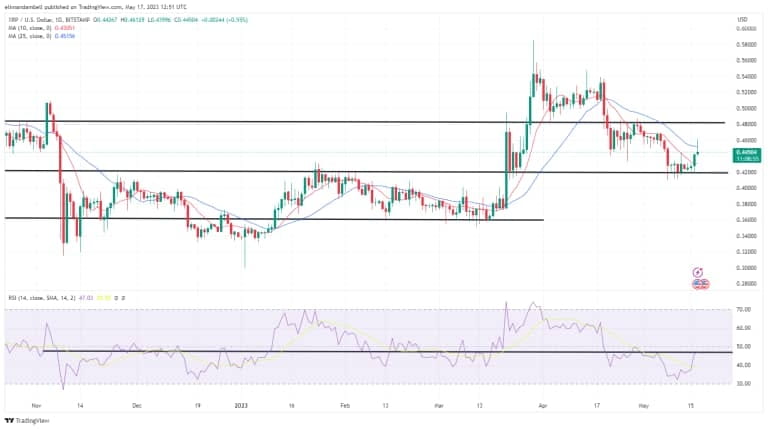 Caso esse ponto seja rompido, há uma boa chance de que o XRP esteja caminhando para uma resistência de US$ 0,48350.