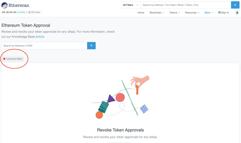O primeiro dos dois principais tipos de aprovação que você encontrará é conectar sua carteira a um dapp pela primeira vez – seja DeFi, um serviço como Etherscan ou um mercado NFT.