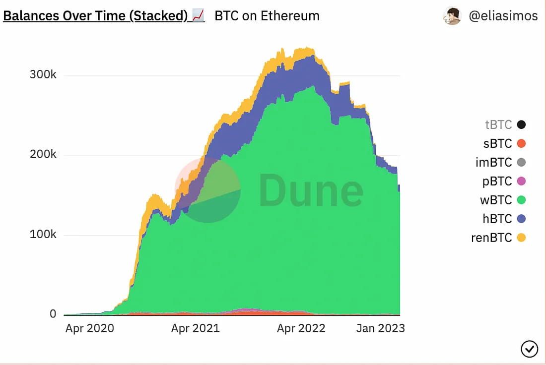 Figura: Tokens atrelados ao BTC na cadeia Ethereum
