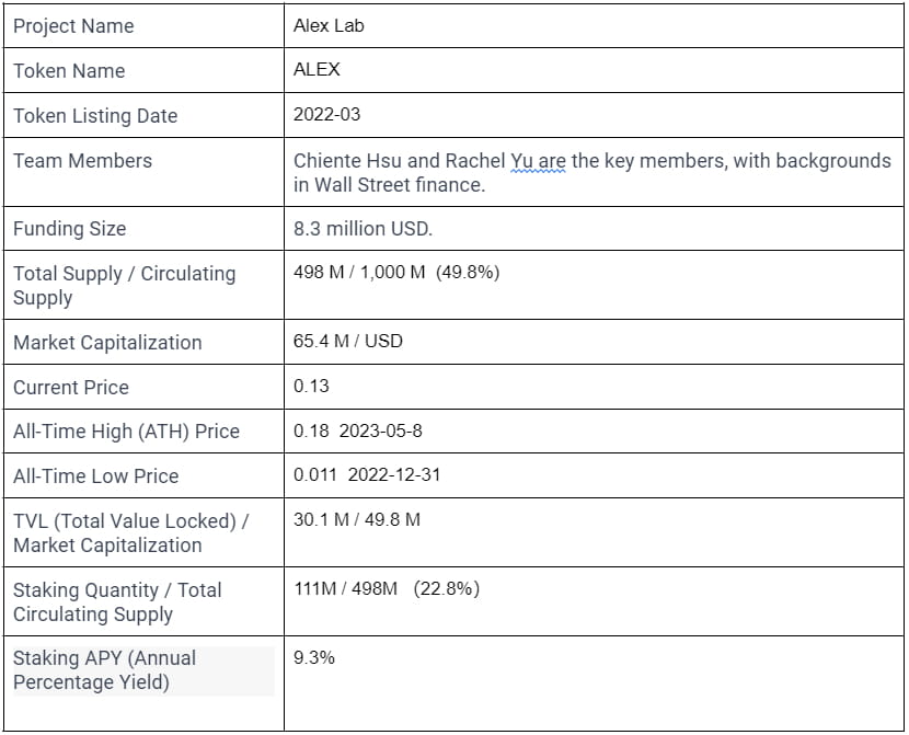 Alex Lab é o aplicativo DeFi líder no ecossistema Stacks, oferecendo uma ampla gama de recursos de produtos, incluindo um LaunchPad para lançamentos de tokens, serviços de empréstimo e empréstimo, uma exchange descentralizada (DEX), um livro de ordens e contratos perpétuos. Além disso, Alex Lab mantém interações ativas com outros participantes do ecossistema, incluindo desenvolvedores de carteiras, e desfruta de alto reconhecimento dentro da comunidade. Considerando que a linguagem de desenvolvimento no ecossistema Stacks é Clarity, o que apresenta uma barreira de entrada maior para desenvolvedores de Ethereum ou outros ecossistemas, Alex Lab estabeleceu um fosso no ecossistema Stacks no curto prazo. Espera-se que esta posição de liderança se expanda com o crescimento de outros projetos dentro do ecossistema Stacks.