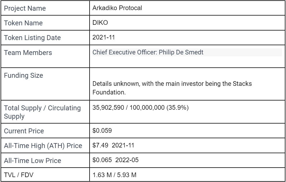 Comparado ao Alex Lab, o Arkadiko Protocol foca principalmente em stablecoins, com outros módulos funcionais servindo como recursos auxiliares. Em comparação aos projetos de stablecoin no Ethereum, o desempenho do produto Arkadiko é atualmente relativamente modesto. No entanto, com o lançamento do SBTC no Stacks no quarto trimestre de 2023, espera-se que ele forneça garantias suficientes para a cunhagem de stablecoins da Arkadiko e potencialmente entre em um período de rápido crescimento.