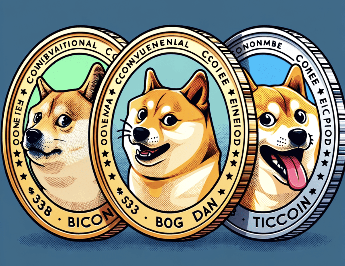 O exemplo mais notável de moeda meme é Dogecoin (DOGE), que estreou em 2013. Esta moeda foi inicialmente concebida em tom de brincadeira para zombar da excitação crescente em torno de criptomoedas estabelecidas como o Bitcoin. Billy Markus e Jackson Palmer, os engenheiros de software por trás do Dogecoin, pretendiam criar uma alternativa mais acessível e alegre ao altcoin convencional, optando por não limitar o seu fornecimento total. Dogecoin ganhou força imediata após seu lançamento, especialmente em fóruns de mídia social como o Reddit.
