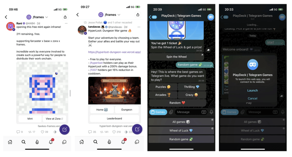 A Farcaster, uma das favoritas entre os influenciadores de criptomoedas, lançou seus Frames em janeiro de 2024, celebrados por serem “uma inovação revolucionária”. No entanto, a eficácia desse recurso no cenário móvel densamente povoado deixa a desejar. Embora os usuários possam realizar operações básicas de Swap e Mint, quando se trata de interações mais complexas, até mesmo na extensão dos minijogos mais simples, executá-los em um quadro diminuto que ocupa menos de um terço da tela de um smartphone pode ser um desafio visual significativo.