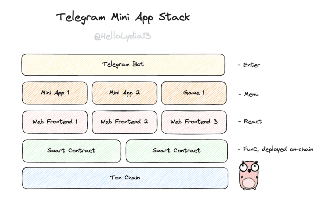 Em abril de 2022, o Telegram lançou o Mini App, concedendo aos desenvolvedores controle total sobre as interfaces do usuário e permitindo a comunicação direta do cliente para o servidor. O Mini Apps fornece uma experiência de usuário mais amigável e composibilidade aprimorada, com integração de carteira perfeita e outros recursos de infraestrutura, tornando-o adequado para a implantação de produtos Web3. O Mini Apps tem o potencial de suplantar todos os sites móveis.