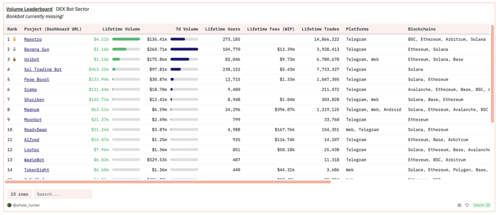 Fonte: https://dune.com/whale_hunter/dex-trading-bot-wars