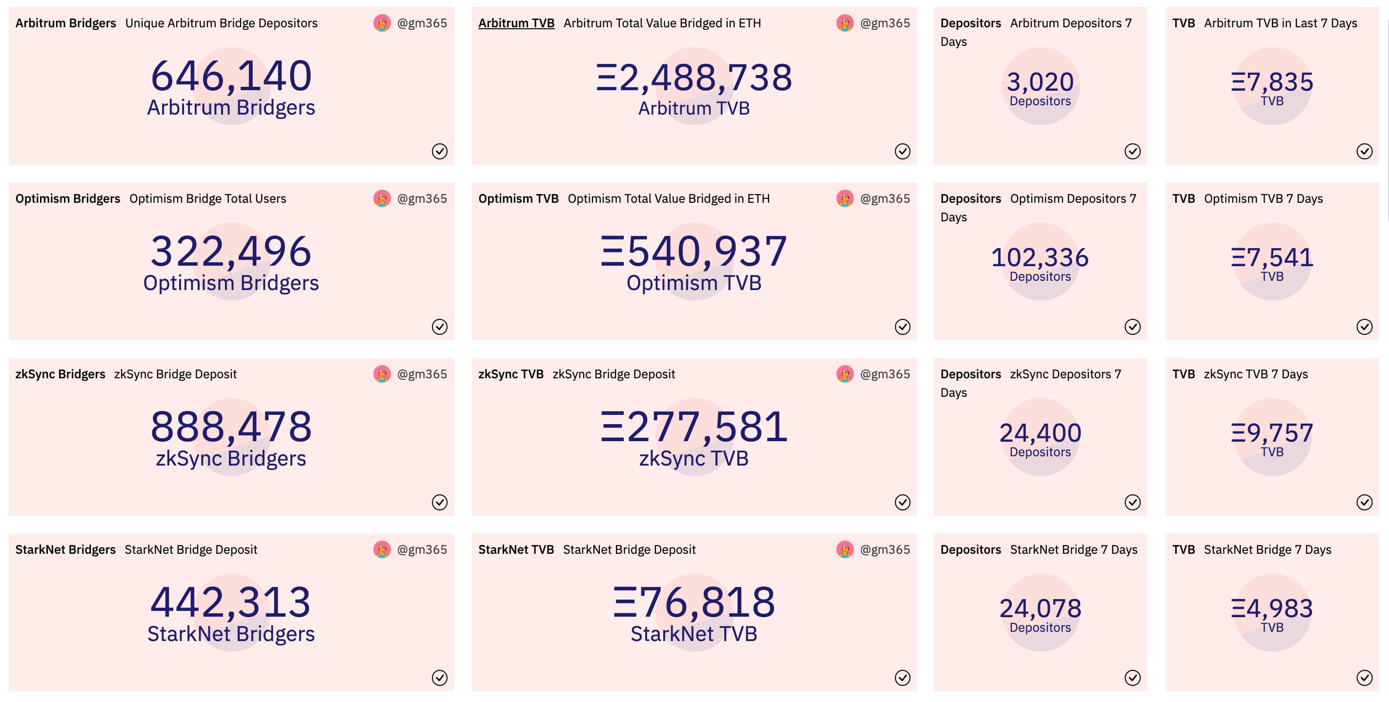 Na semana passada, o valor total agregado em Arbitrum e Optimism foi próximo, com zksync conectando o valor mais alto, quase 10.000 ETH. No entanto, starknet sofreu um ligeiro declínio em comparação com a semana anterior.