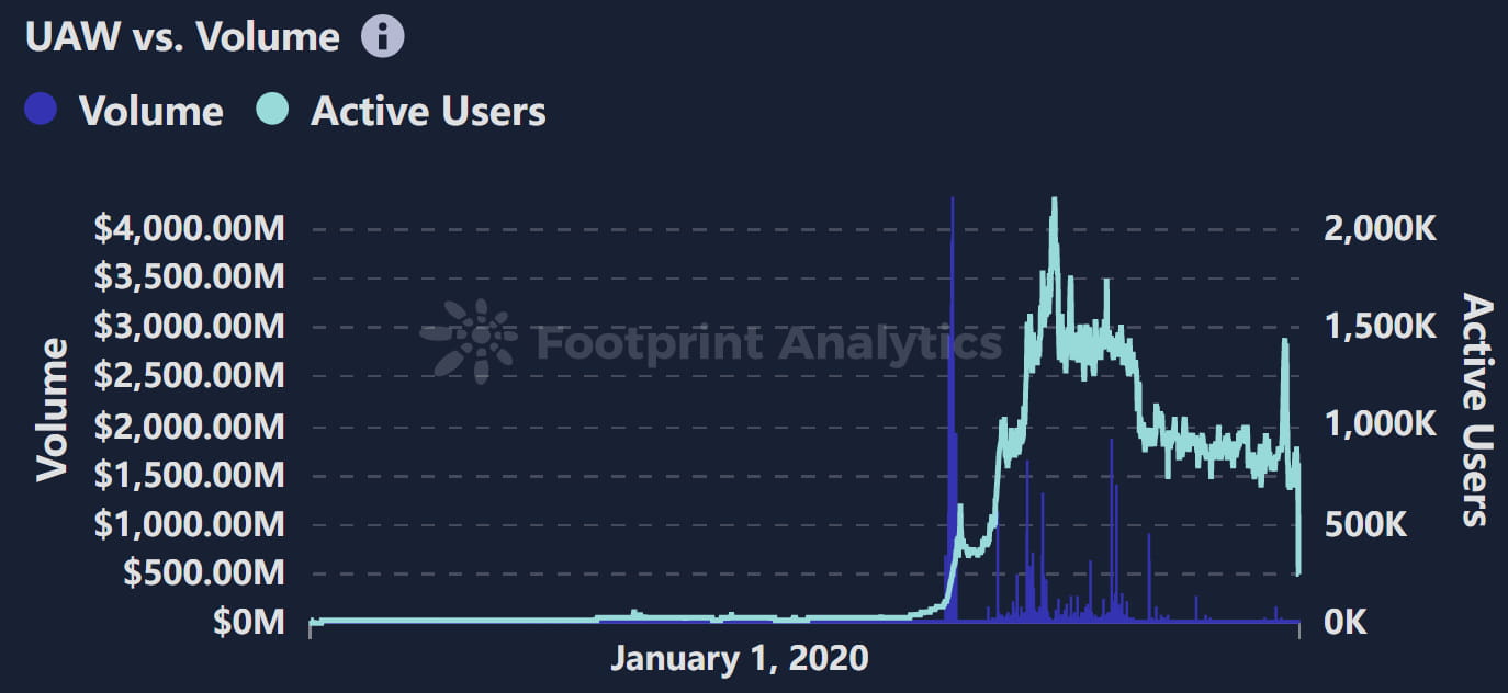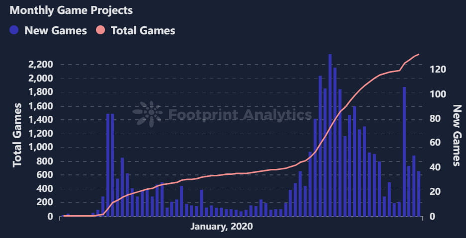 A GameFi, depois de atingir o seu pico em 2022 e entrar num período de calma em dezembro daquele ano, ressurgiu em fevereiro de 2023 à medida que as condições do mercado melhoraram. O setor viu um aumento significativo no lançamento de novos jogos, mas o número real de participantes ativos não apresentou melhoria significativa.