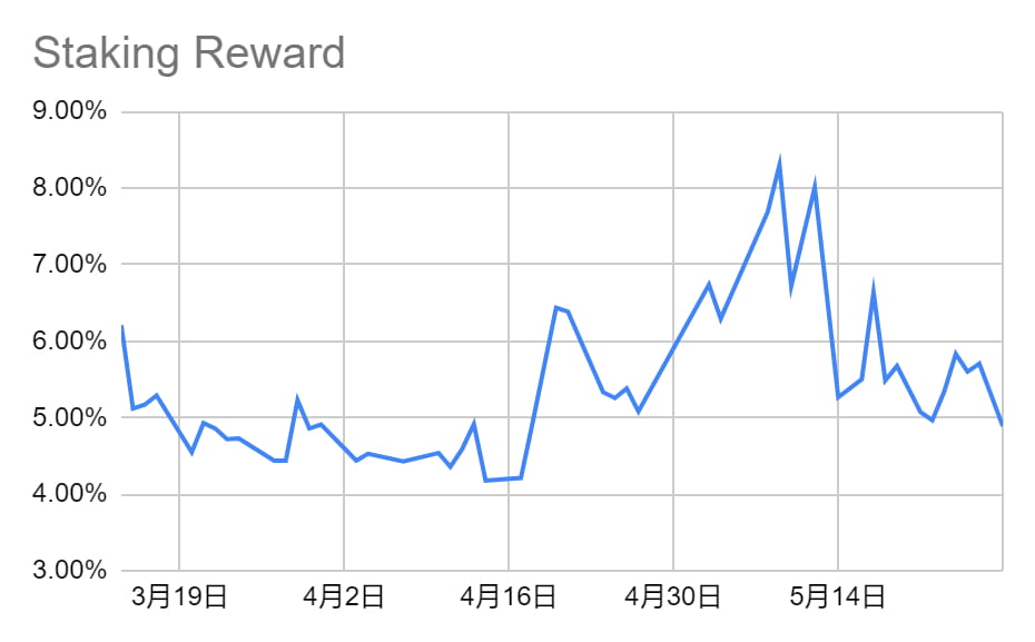 Imagem: O rendimento do staking de ETH permanece estável em comparação com a semana passada