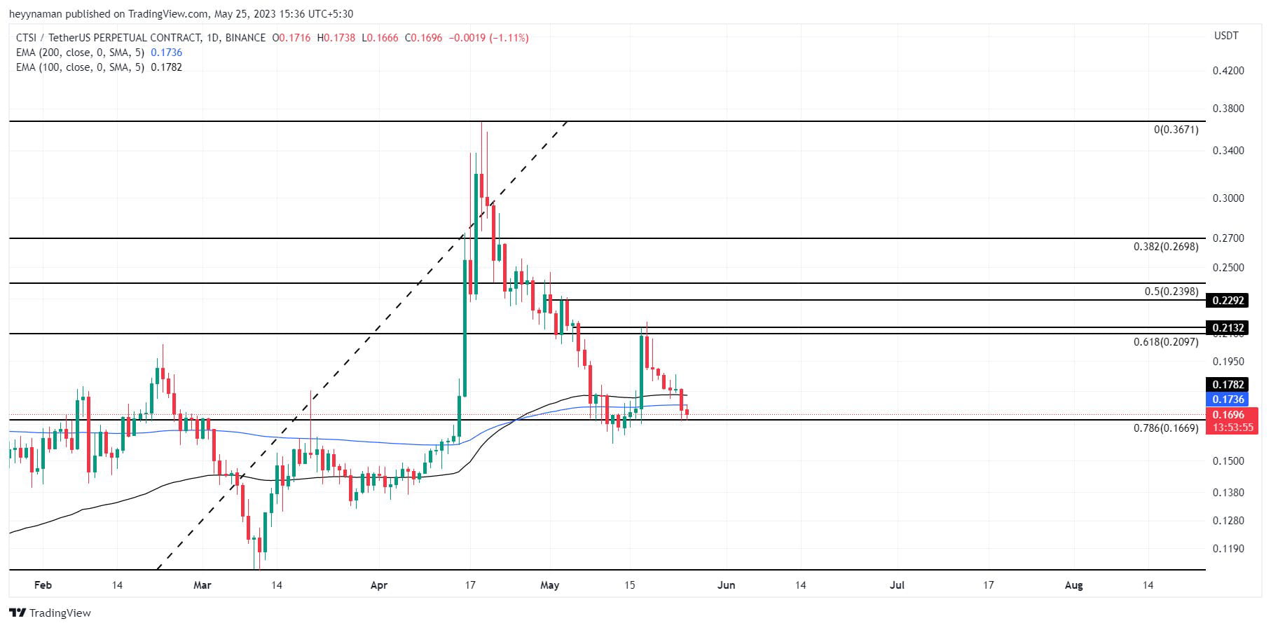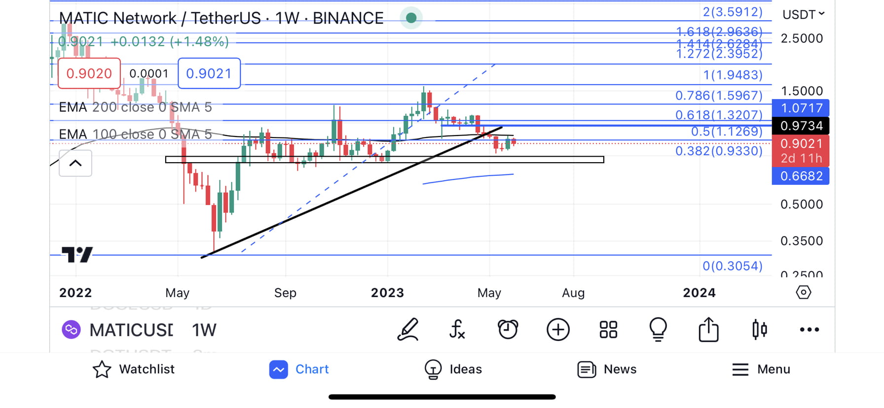 Outra cripto famosa e favorita de todos é a MATIC. A linha de tendência diária de $MATIC estava muito otimista e, como esperado, quebrou a linha de tendência e se tornou pessimista