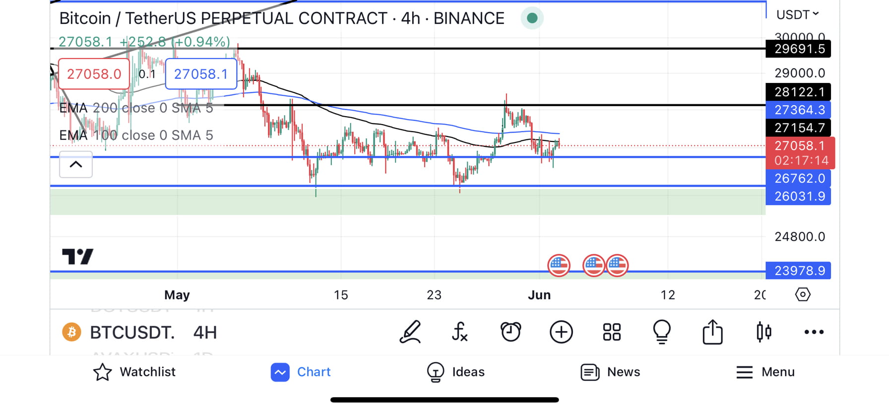 A resistência chave está em torno de US$ 29.600, uma quebra acima pode ser muito otimista para o bitcoin, enquanto isso, os níveis de suporte são US$ 26.700 e US$ 26.000. Se você está procurando negociar BTC, aqui estão as zonas
