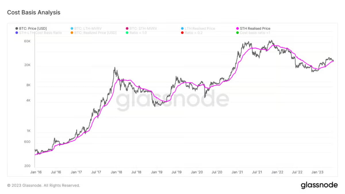 Preço Realizado pelo Detentor de Curto Prazo. Em termos mais simples, esta pequena joia reflete o preço médio pelo qual as moedas que foram movimentadas nos últimos 155 dias e não guardadas em reservas cambiais foram compradas.