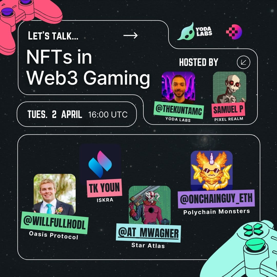 Defina esses alarmes ⏰✅ https://t.co/KbdcbJrHLZ Estamos falando de NFTs em jogos com: 🎮 @willfullhodl, @OasisProtocol 🎮 @gollazaba, @iskra_world 🎮 @at_mwagner, @staratlas 🎮 @onchainguy_eth, @polychainmon Hospedado por: 🎮 @TheKuntaMC, @yodalabs_ 🎮 @samuel_plesnik, @PixelRealmlabs